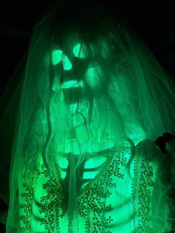 It's a Halloween prop display in our garage and front yard. Most of the displays are homemade and animated. We have an animated terminator cyborg, a talking audrey 2 plant with chomping buds. A pirate display with 2 pirates and lots of treasure all around. We also have a full size gremlin and lots of roasting body parts. A headless bride and a talking coffin greeter. We also have some demonic babies. A screaming book of the dead with an angry mummy and Achmed the Dead Terrorist gently asking everyone to be quiet or else. We welcome photo takers and we will even pose with you. It's fun for the whole family and plenty of free candy for the kids.