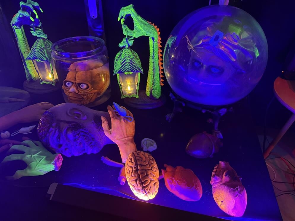 It's a Halloween prop display in our garage and front yard. Most of the displays are homemade and animated. We have an animated terminator cyborg, a talking audrey 2 plant with chomping buds. A pirate display with 2 pirates and lots of treasure all around. We also have a full size gremlin and lots of roasting body parts. A skeleton ghost bride and a talking coffin greeter. We also have some demonic babies. A screaming book of the dead with an angry mummy and Achmed the Dead Terrorist gently asking everyone to be quiet or else. We welcome photo takers and we will even pose with you. It's fun for the whole family and plenty of free candy for the kids.